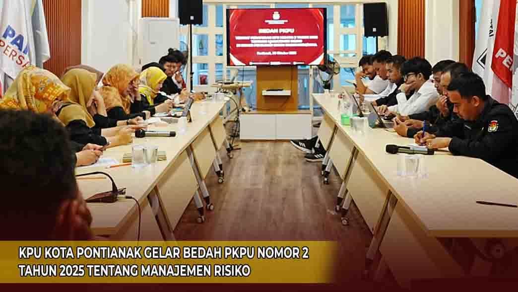 Pontianak - KPU Kota Pontianak menyelenggarakan kegiatan Bedah PKPU yang membahas Peraturan Komisi Pemilihan Umum Nomor 2 Tahun 2025 tentang Manajemen Risiko di Komisi Pemilihan Umum, KPU Provinsi, dan KPU Kabupaten/Kota. Kegiatan ini dilaksanakan sebagai bagian dari upaya memperkuat kapasitas kelembagaan dalam memahami dan menerapkan prinsip-prinsip manajemen risiko, bertempat di aula KPU Kota Pontianak. Rabu (22/10)