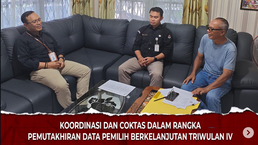 KPU Kota Pontianak melaksanakan kegiatan koordinasi dan pencocokan data (coktas) dalam rangka Pemutakhiran Data Pemilih Berkelanjutan (PDPB) Triwulan IV. Kegiatan ini bertujuan untuk memastikan data pemilih di Kota Pontianak tetap akurat, mutakhir, dan berkualitas.