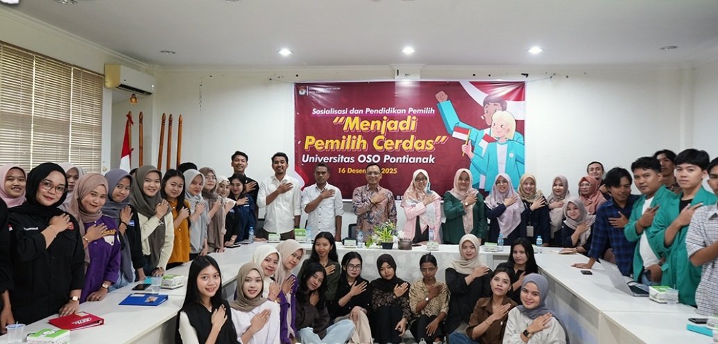 KPU Kota Pontianak menggelar kegiatan Sosialisasi dan Pendidikan Pemilih bertajuk “Menjadi Pemilih Cerdas” di Universitas OSO Pontianak, Selasa (16/12).