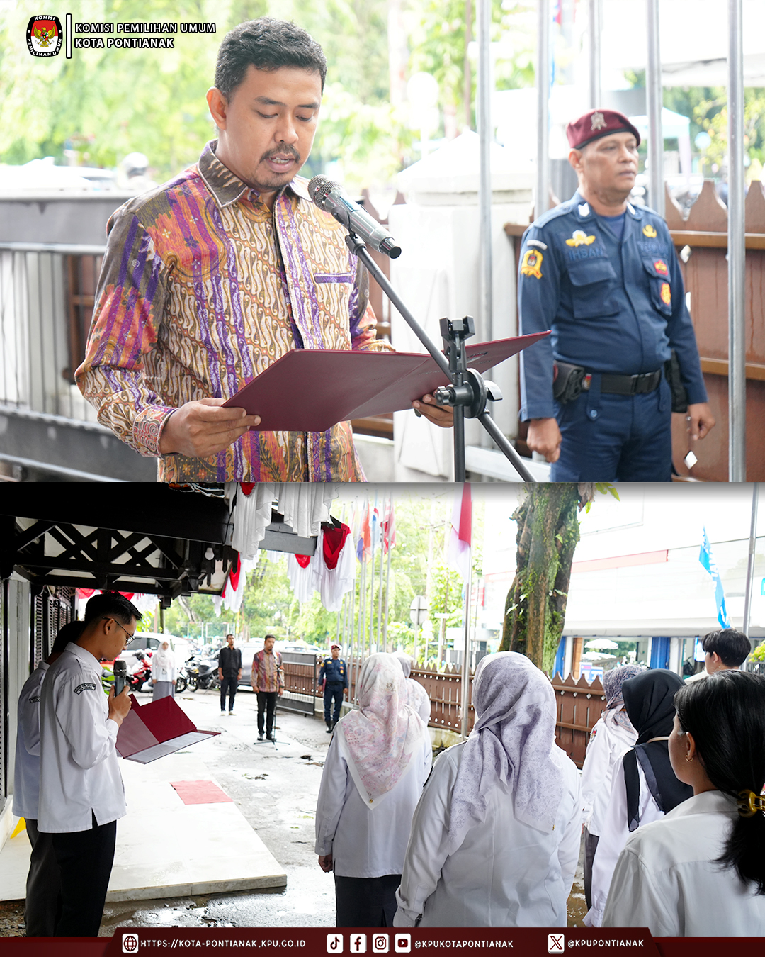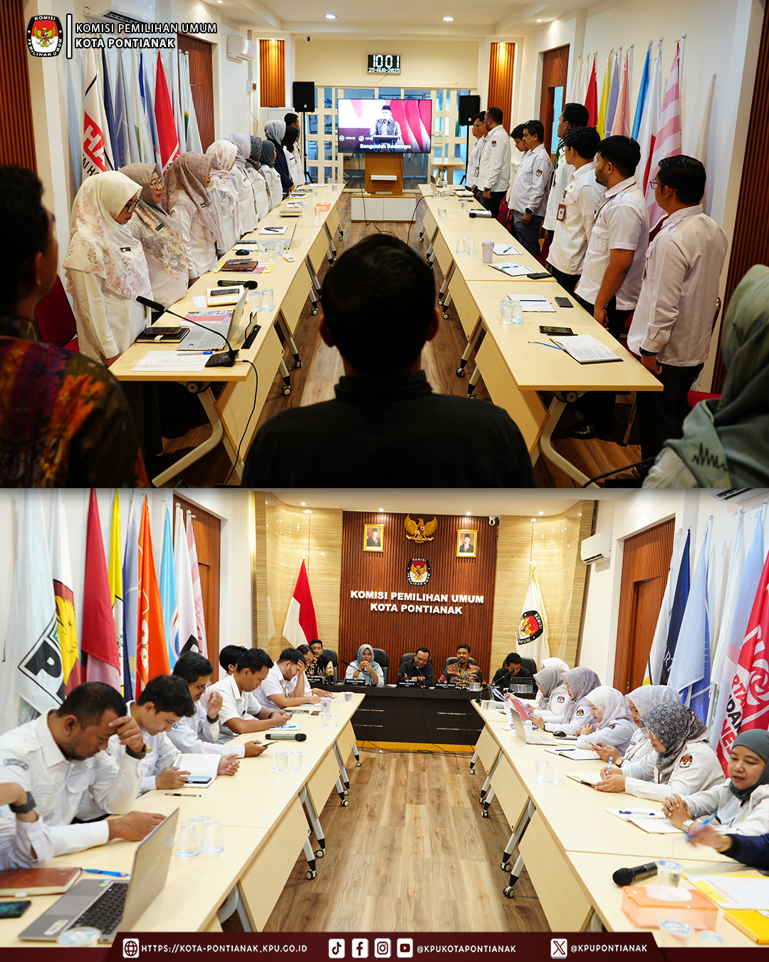 Pontianak – Komisi Pemilihan Umum (KPU) Kota Pontianak melaksanakan apel dan rapat rutin di lingkungan kantor KPU Kota Pontianak pada Senin, 25 Agustus 2025.