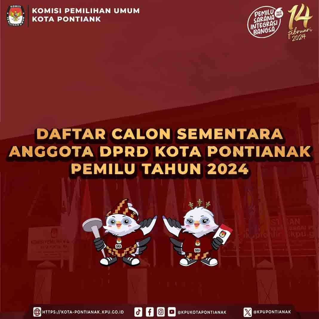 DAFTAR CALON SEMENTARA ANGGOTA DPRD KOTA PONTIANAK PEMILU TAHUN 2024