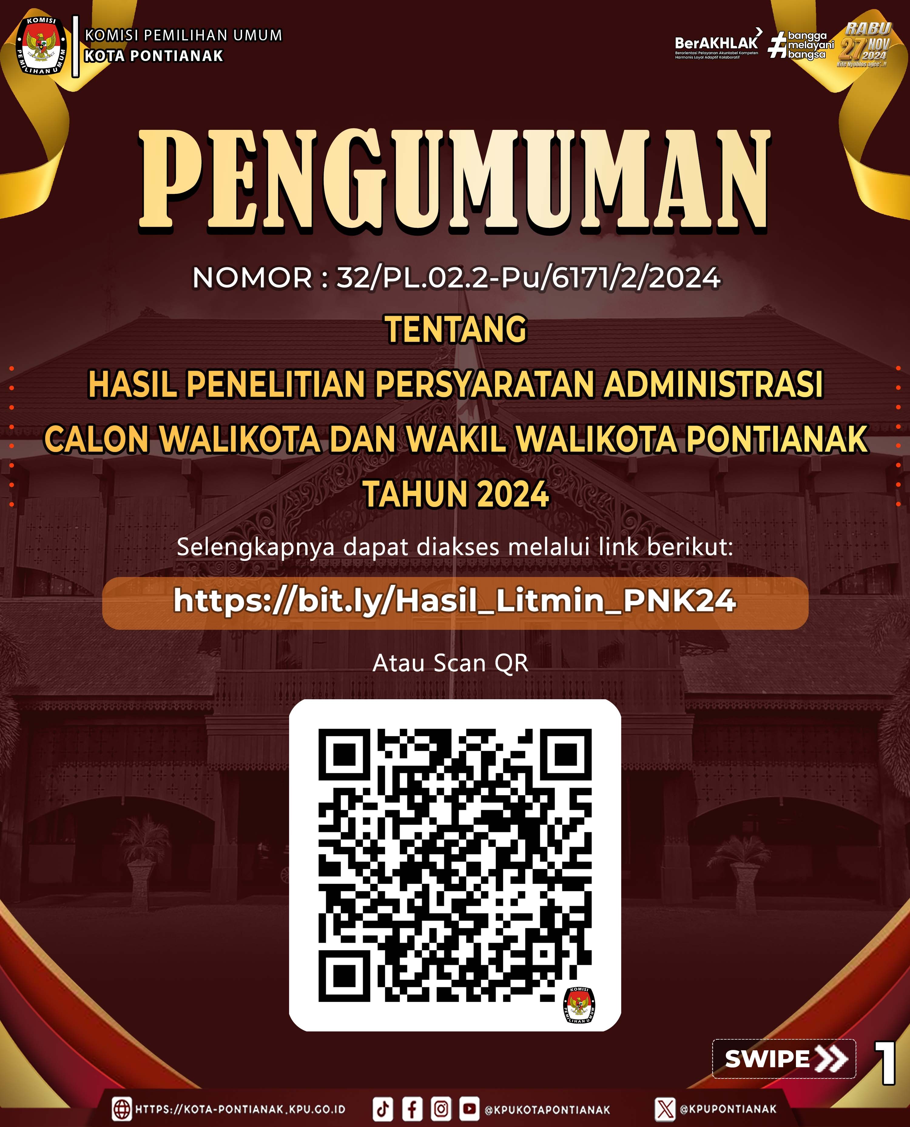Hasil Penelitian Persyaratan Administrasi Calon Walikota dan Wakil Walikota Pontianak Tahun 2024