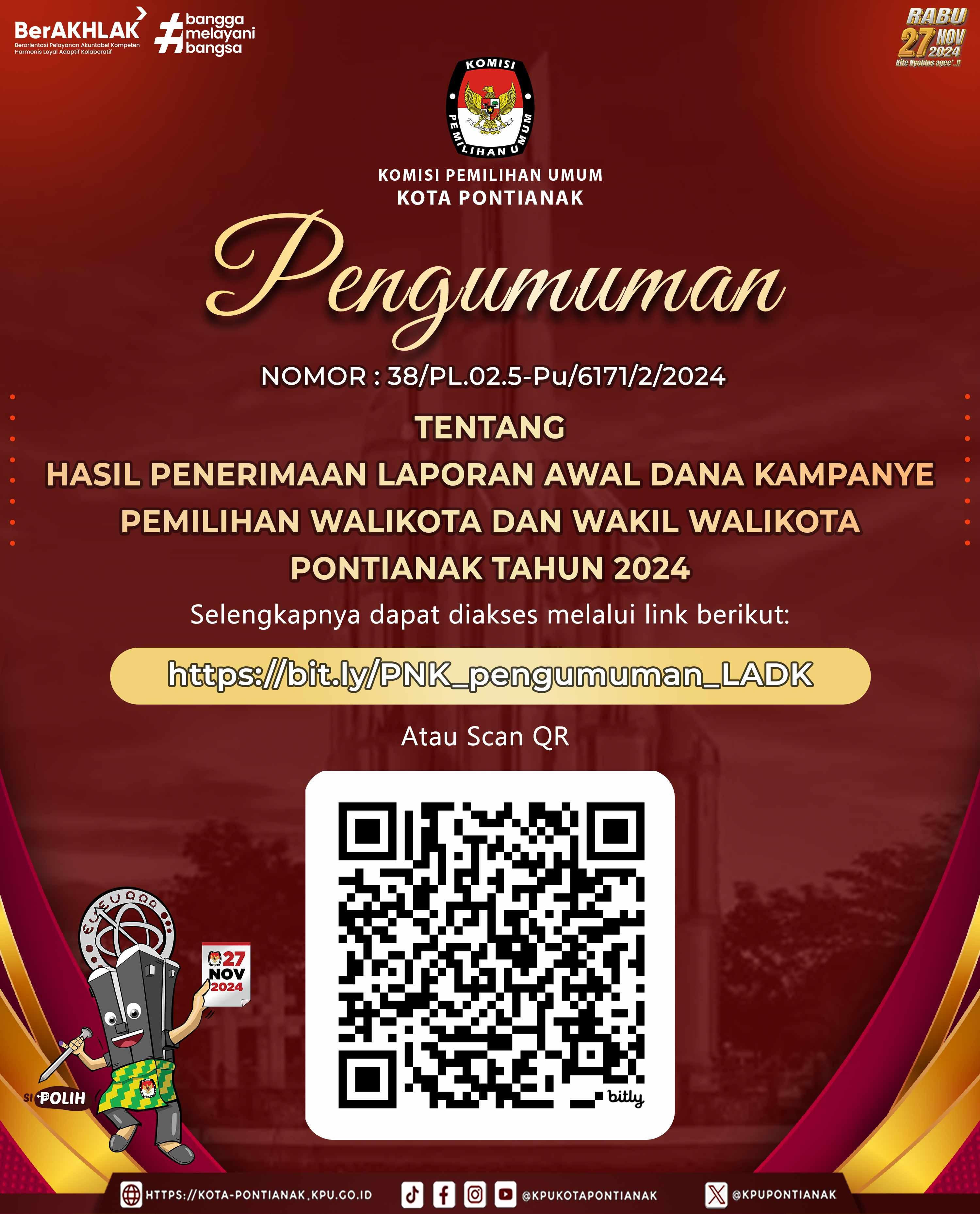 Hasil Penerimaan Laporan Awal Dana Kampanye Pemilihan Walikota dan Wakil Walikota Pontianak Tahun 2024