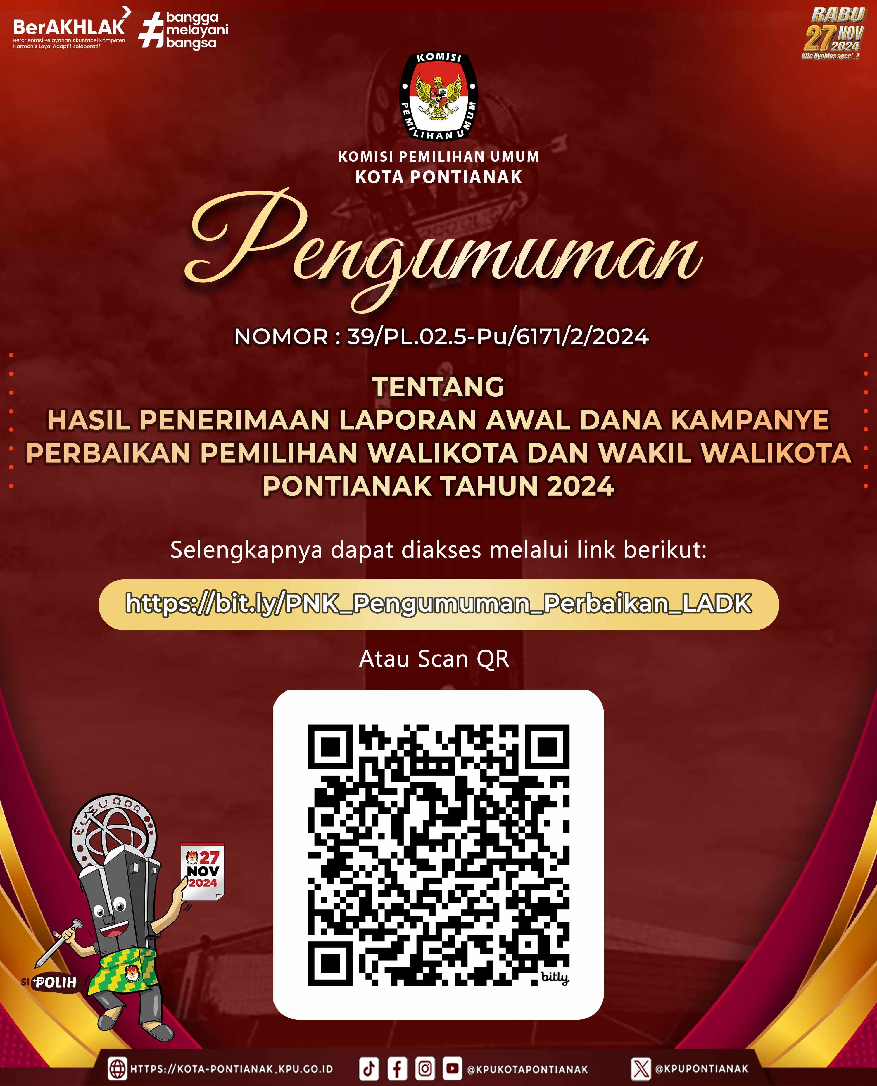 Hasil Penerimaan Laporan Awal Dana Kampanye Perbaikan Pemilihan Walikota dan Wakil Walikota Pontianak Tahun 2024