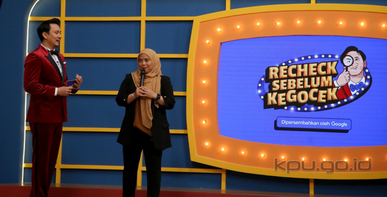 Jakarta, kpu.go.id - Anggota KPU Betty Epsilon Idroos menghadiri acara Game Show Prebunking “Recheck Sebelum Kegocek” untuk mengenali misinformasi yang diadakan Google Indonesia dan ditayangkan, Jumat (6/10/2023).