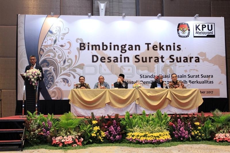 Tanggerang-Komisi Pemilihan Umum mengadakan kegiatan Bimbingan Teknis Desain Surat Suara untuk Pemilihan Gubernur/Bupati/Walikota Tahun 2018 yang diselenggarakan pada tanggal 10 s.d. 12 Oktober 2017 bertempat di Tangerang, Banten. Kegiatan ini dibuka oleh Anggota KPU, Wahyu Setiawan dan dihadiri oleh Gubernur Provinsi Banten, Wahidin Halim, Anggota KPU RI, Evi Novida Ginting, Kepala Biro Perencanaan dan Data, Kepala Biro SDM, Setjen KPU, Ketua dan Anggota KPU Banten serta diikuti oleh 171 Satuan Kerja KPU Provinsi/Kabupaten/Kota yang menyelenggarakan Pemilihan Gubernur/Bupati/Walikota pada Tahun 2018 dengan total peserta sebanyak 340 orang.
