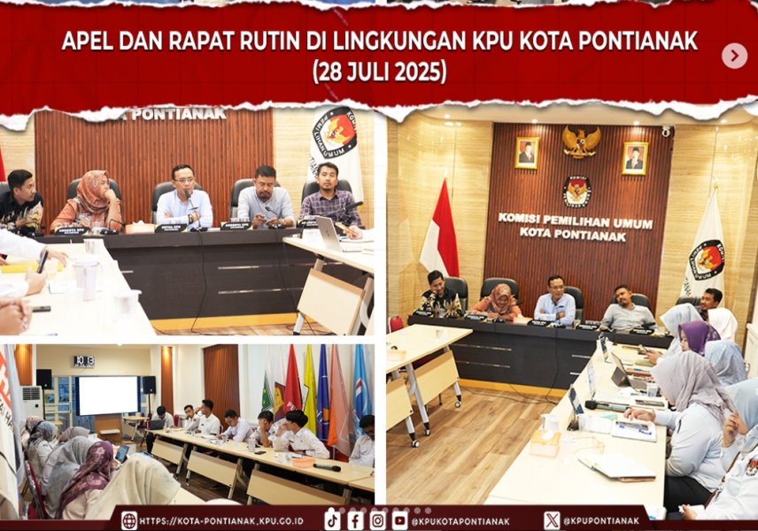 Pontianak — Komisi Pemilihan Umum (KPU) Kota Pontianak melaksanakan kegiatan Apel dan Rapat Rutin di lingkungan kantor KPU Kota Pontianak, sebagai bagian dari upaya memperkuat koordinasi internal dan perencanaan program kerja.