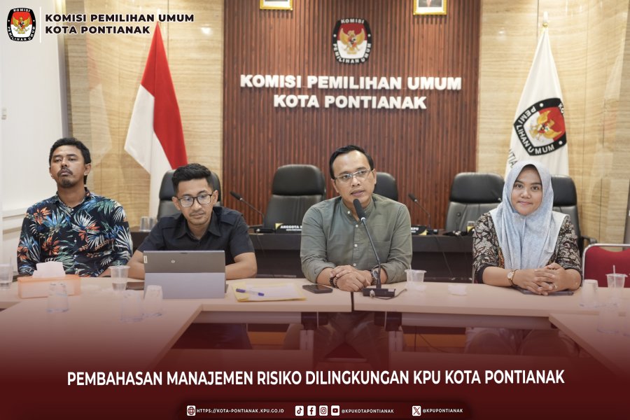 Pontianak — Komisi Pemilihan Umum (KPU) Kota Pontianak melaksanakan kegiatan Pembahasan Manajemen Risiko yang berlangsung di Aula Kantor KPU Kota Pontianak. Kegiatan ini merupakan bagian dari komitmen KPU dalam memperkuat tata kelola organisasi yang transparan, akuntabel, dan berorientasi pada peningkatan kualitas kinerja kelembagaan.