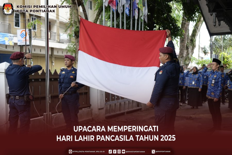 Pontianak – Dalam rangka memperingati Hari Lahir Pancasila yang jatuh setiap tanggal 1 Juni, Komisi Pemilihan Umum (KPU) Kota Pontianak melaksanakan upacara peringatan pada Senin, 2 Juni 2025, bertempat di halaman Kantor KPU Kota Pontianak.