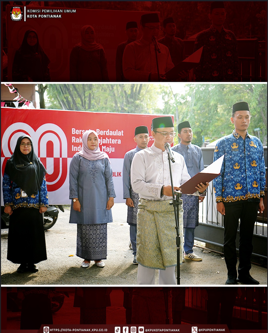 Ketua KPU Kota Pontianak, David Teguh M., bertindak sebagai Inspektur upacara. Sebagai pemimpin upacara Nuraini Kepala Sub Bagian SDM dan Parmas.