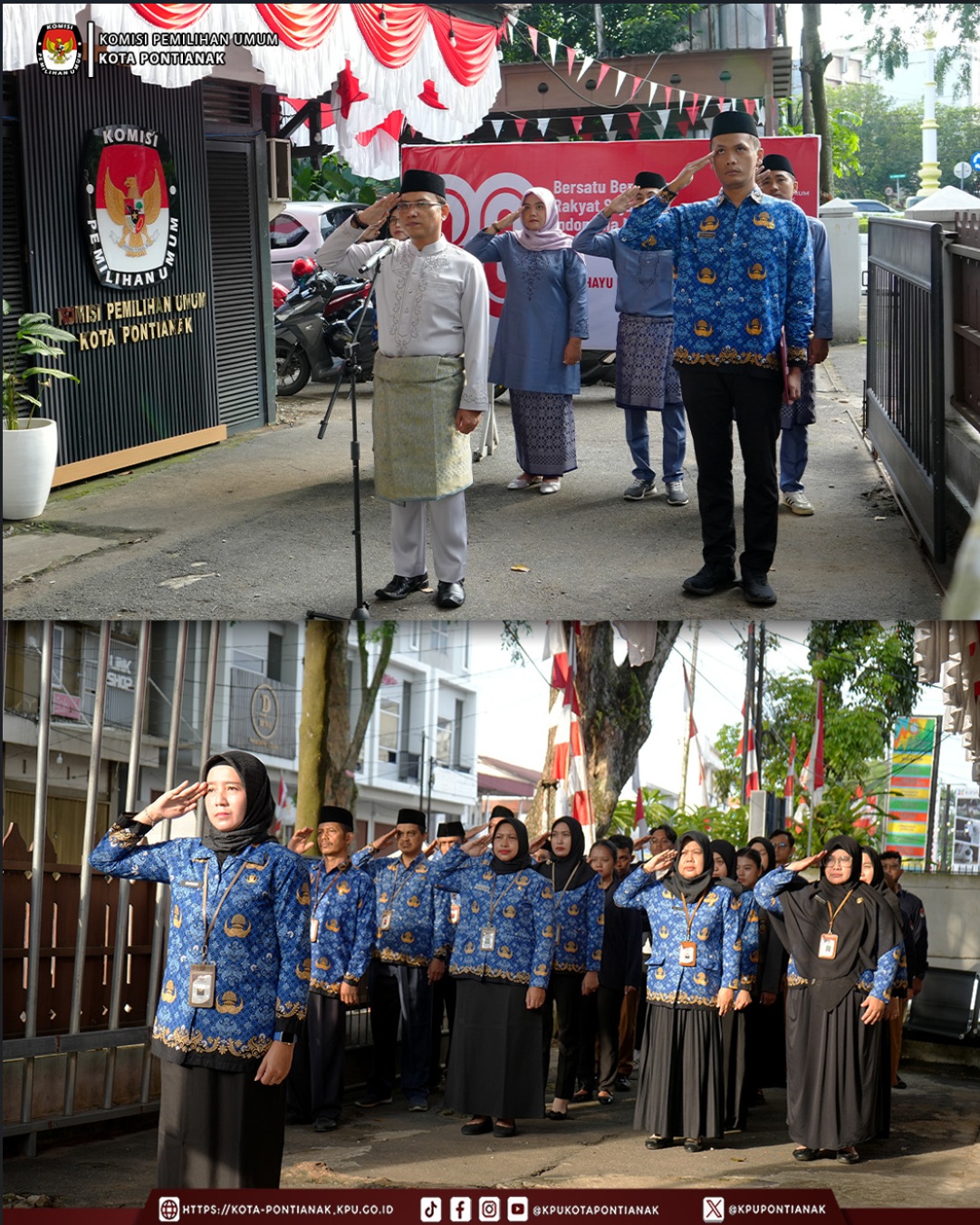 Pontianak - KPU Kota Pontianak menggelar Upacara Pengibaran Bendera Merah Putih, memperingati Hari Ulang Tahun ke-80 Kemerdekaan Republik Indonesia Tahun 2025, di halaman kantor KPU Kota Pontianak.