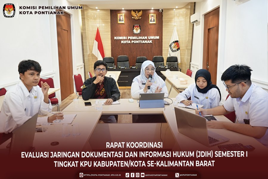 Kegiatan ini bertujuan untuk mengevaluasi capaian kinerja pengelolaan JDIH selama semester pertama tahun 2025, sekaligus menyamakan pemahaman dan langkah strategis dalam penguatan tata kelola dokumentasi dan informasi hukum di lingkungan KPU se-Kalimantan Barat.