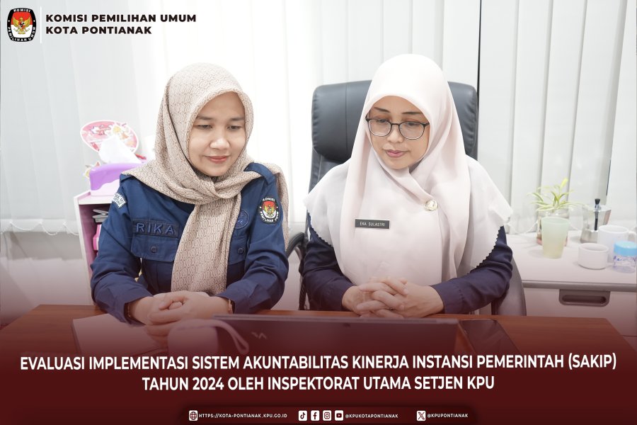 Pontianak — Komisi Pemilihan Umum (KPU) Kota Pontianak mengikuti kegiatan Evaluasi Implementasi Sistem Akuntabilitas Kinerja Instansi Pemerintah (SAKIP) Tahun 2024 yang diselenggarakan oleh Inspektorat Utama Sekretariat Jenderal KPU secara daring, pada Senin, 1 Juli 2025.