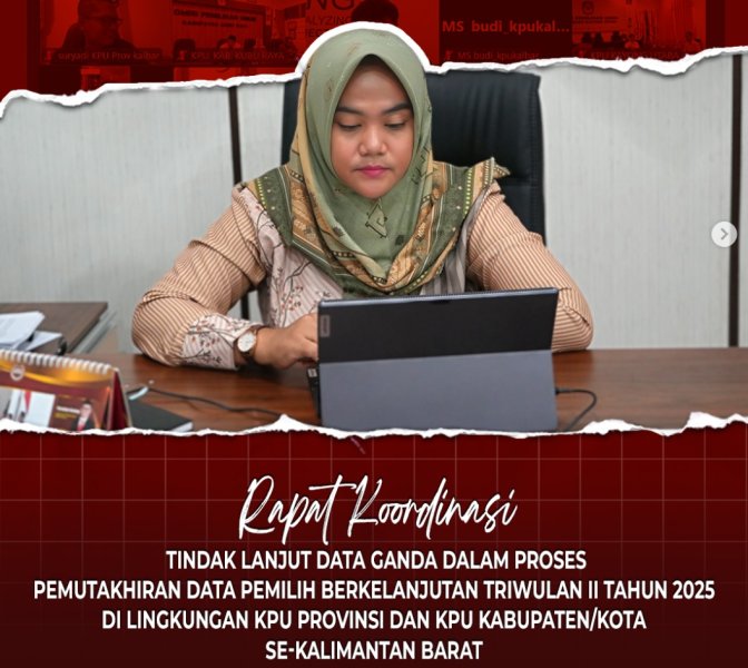 Pontianak — KPU Kota Pontianak mengikuti Rapat Koordinasi Tindak Lanjut Data Ganda dalam proses Pemutakhiran Data Pemilih Berkelanjutan (PDPB) Triwulan II Tahun 2025 yang diselenggarakan secara daring oleh KPU Provinsi Kalimantan Barat.
