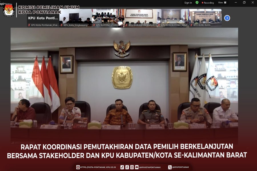 KPU Kota Pontianak mengikuti Rapat Koordinasi Pemutakhiran Data Pemilih Berkelanjutan (PDPB) yang diselenggarakan oleh KPU Provinsi Kalimantan Barat secara daring, bersama KPU Kabupaten/Kota se-Kalimantan Barat serta para pemangku kepentingan terkait.