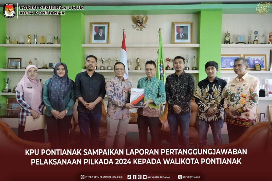 Pontianak, 10 April 2025 – Komisi Pemilihan Umum (KPU) Kota Pontianak menyampaikan Laporan Pertanggungjawaban Pelaksanaan Pemilihan Kepala Daerah (Pilkada) Tahun 2024 kepada Wali Kota Pontianak. Kegiatan ini berlangsung di Kantor Wali Kota Pontianak sebagai bentuk akuntabilitas dan transparansi atas seluruh rangkaian pelaksanaan Pilkada yang telah dilaksanakan dengan lancar dan demokratis.