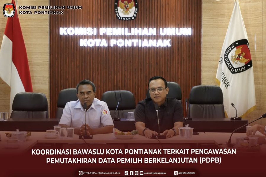 Pontianak, 30 April 2025 – Komisi Pemilihan Umum (KPU) Kota Pontianak menerima kunjungan dari Badan Pengawas Pemilihan Umum (Bawaslu) Kota Pontianak dalam rangka koordinasi pengawasan terhadap pelaksanaan Pemutakhiran Data Pemilih Berkelanjutan (PDPB). Pertemuan berlangsung di Aula Kantor KPU Kota Pontianak dan menjadi forum strategis dalam memperkuat sinergi kelembagaan antara penyelenggara dan pengawas pemilu.