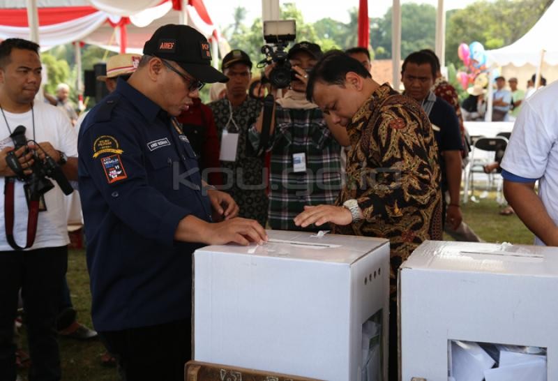 Simulasi pemungutan dan penghitungan suara untuk pemilu serentak 2019 tersebut dilaksanakan di Lapangan Kampung Kelapa, Sindang Sono, Tangerang, Banten, Sabtu (19/08). Simulasi yang dilakukan mulai pukul 07.00 WIB tersebut dilaksanakan seperti halnya pemungutan dan penghitungan suara sebenarnya dengan petugas dan pemilih masyarakat sekitar.