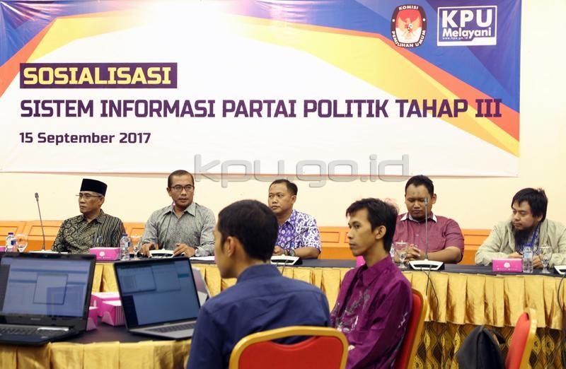 Jakarta, kpu.go.id – Partai politik (parpol) yang hendak menjadi peserta pemilu 2019, diwajibkan mendaftar di Komisi Pemilihan Umum (KPU). Pendaftaran tersebut juga disertai dokumen-dokumen persyaratan dan sebagian besar dokumen diinput juga melalui aplikasi Sistem Informasi Partai Politik (Sipol).