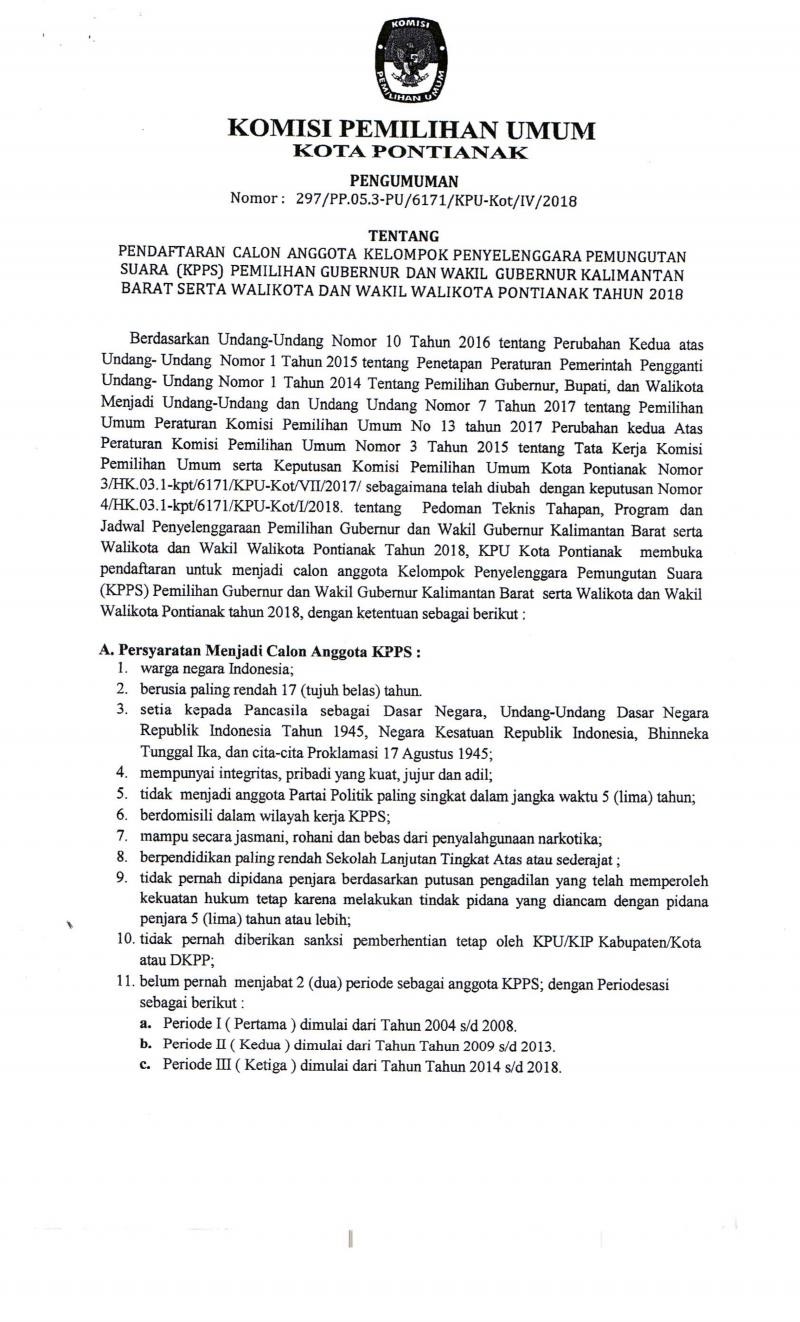 PENDAFTARAN CALON ANGGOTA KPPS PILKADA SERENTAK 2018