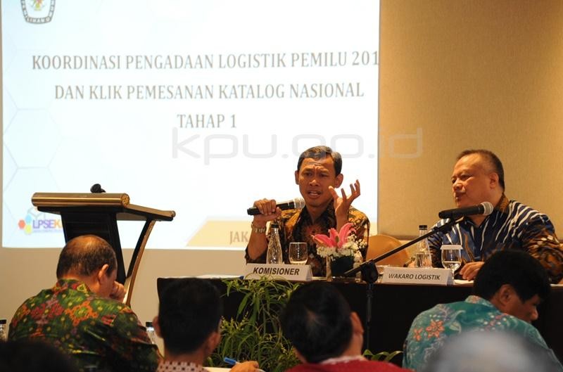 akarta, kpu.go.id – Enam bulan jelang pelaksanaan Pemilu 2019, Komisi Pemilihan Umum (KPU) menggelar Koordinasi Pengadaan Logistik Pemilu 2019 dan Klik Pemesanan Katalog Nasional Tahap 1 yang dimulai 5-7 November 2018. Acara dihadiri oleh 34 provinsi yang masing-masing diwakili dua orang,pejabat pembuat komitmen dan pejabat pengadan, serta dibuka langsung oleh Plh Ketua KPU Pramono Ubaid Tanthowi.