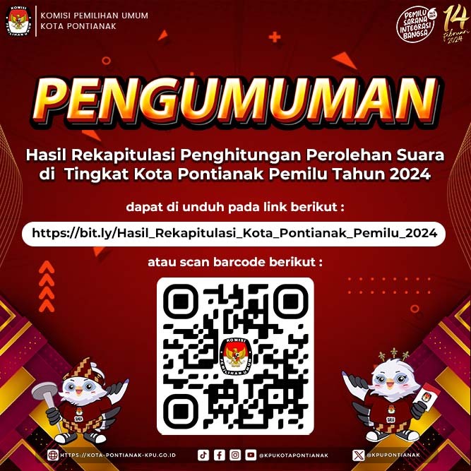 Pengumuman Hasil Rekapitulasi Penghitungan Perolehan Suara di Tingkat Kota Pontianak Pemilu Tahun 2024