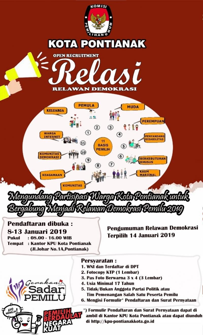 Pengumuman Rekrutmen Relawan Demokrasi Pemilu 2019