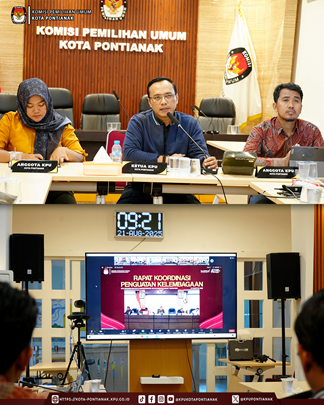 Pontianak – KPU Kota Pontianak mengikuti Rapat Koordinasi (Rakor) Penguatan Kelembagaan KPU Provinsi dan KPU Kabupaten/Kota se-Kalimantan Barat yang diselenggarakan secara daring oleh KPU Provinsi Kalimantan Barat, bertempat di Aula KPU Kota Pontianak.