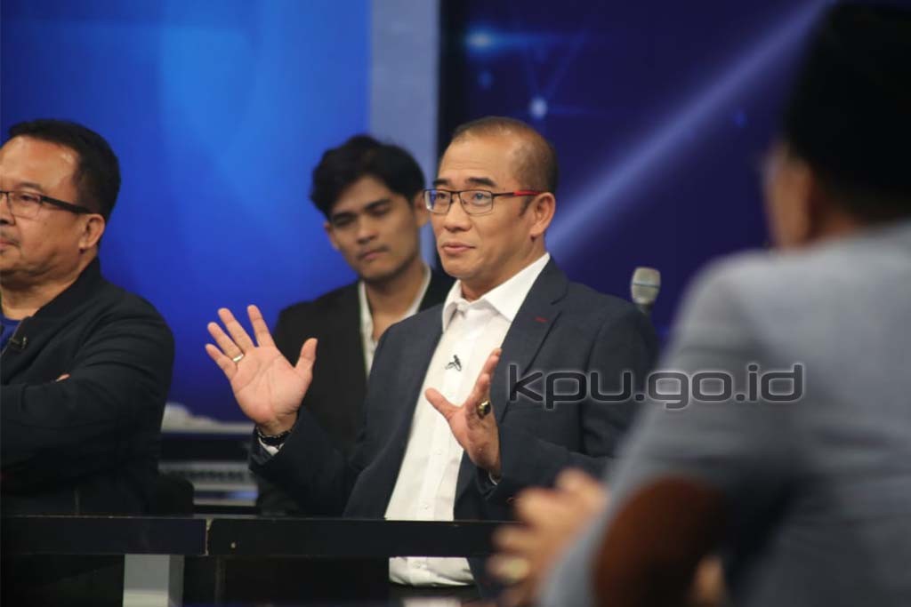 Hadir narasumber lainnya Nurdin Halid Wakil Ketua umum DPP Partai Golkar, Johnny G Plate Sekjen DPP Partai Nasdem, Aboe Bakar Alhabsy Sekjen DPP PKS, Said Qil Siradj Tokoh NU, Sunanto Ketua Umum PP Pemuda Muhammadiyah, Rhenald Kasali Pendiri Rumah Perubahan, Rustika Herlambang Direktur Komunikasi Indonesia Indicator, serta Tsamara Amany Tokoh Muda. (humas kpu james/foto: james/ed diR)