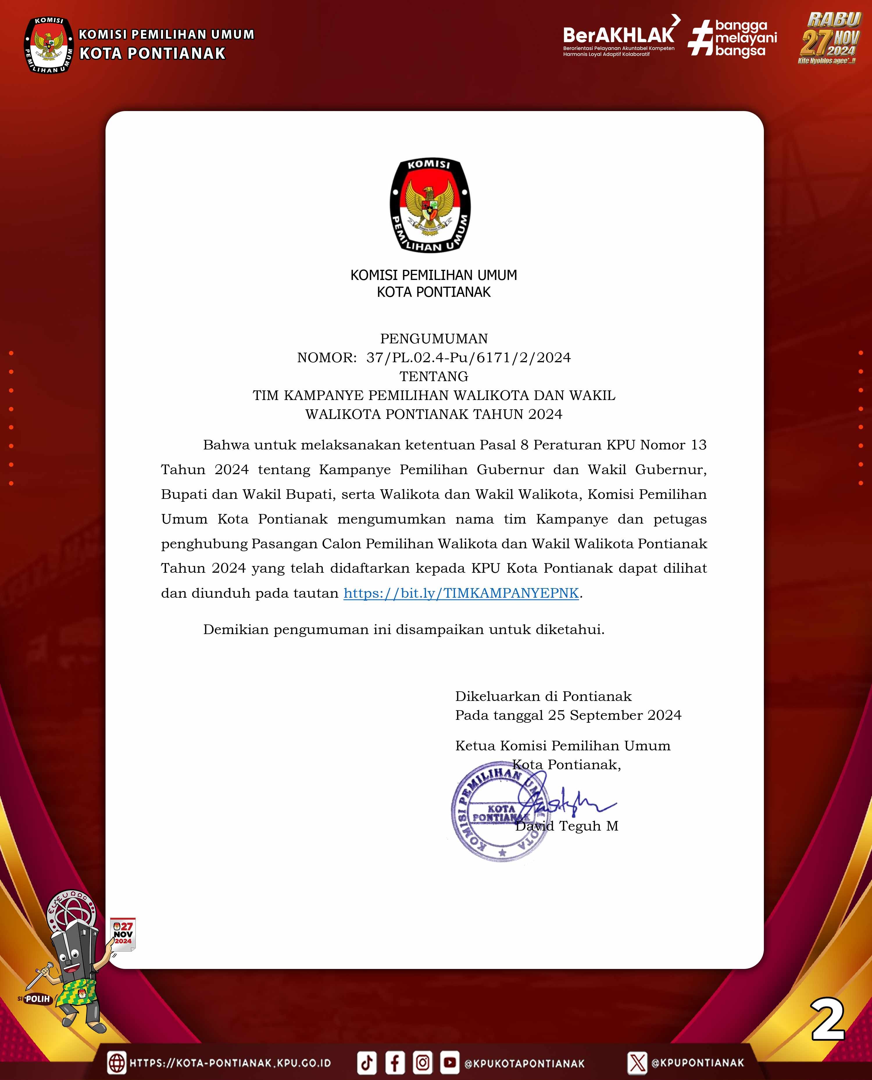 Tim Kampanye Pemilihan Walikota dan Wakil Walikota Pontianak Tahun 2024