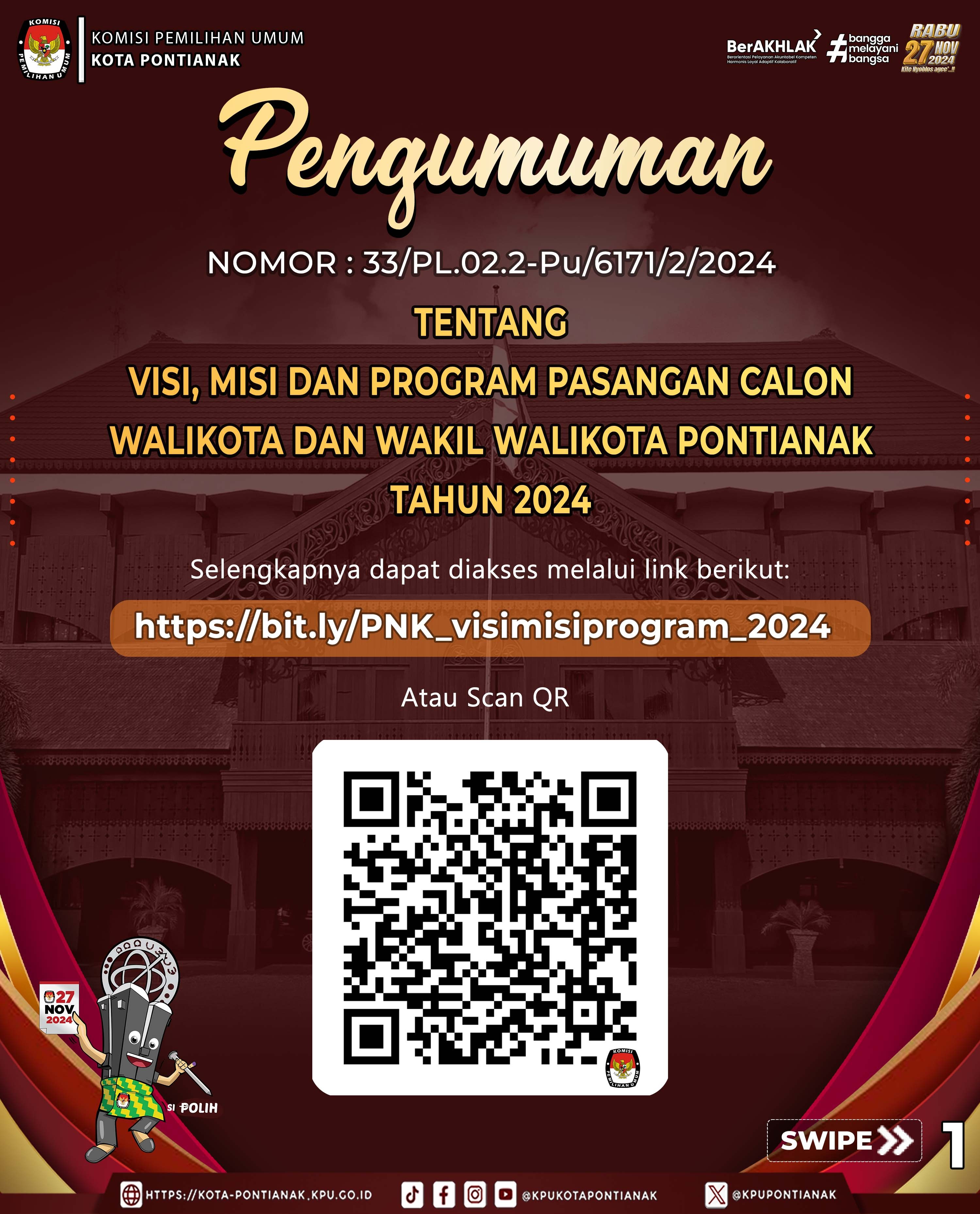VISI, MISI DAN PROGRAM PASANGAN CALON WALIKOTA DAN WAKIL WALIKOTA PONTIANAK TAHUN 2024